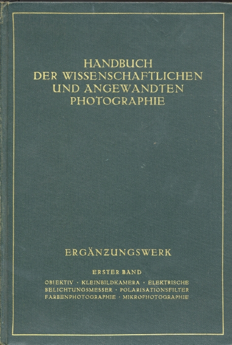 698 | 19x25 | Erster Band Objektive, Kleinbildkamera, elektrische Belichtungsmesser, Polarisationsfilter, Farbenphotographie, Mikrophotographie 1943 |
