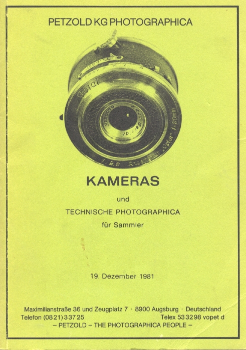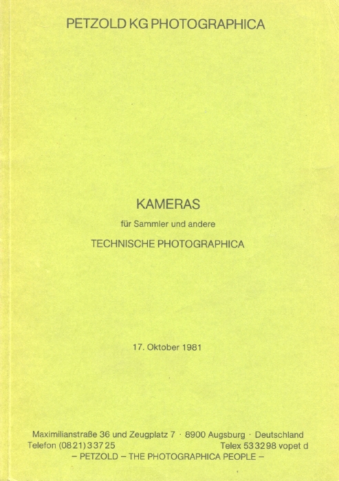 | A 030 |  | Petzold Photographica | Auktionskatalog | A | 35,-- |