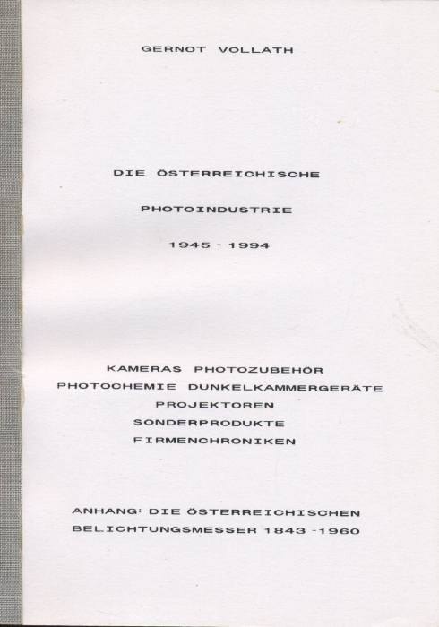 | A 037 |  | Die Österreichische Photoindustrie 1945-1994 | Kamerageschichte | A | 20,-- |