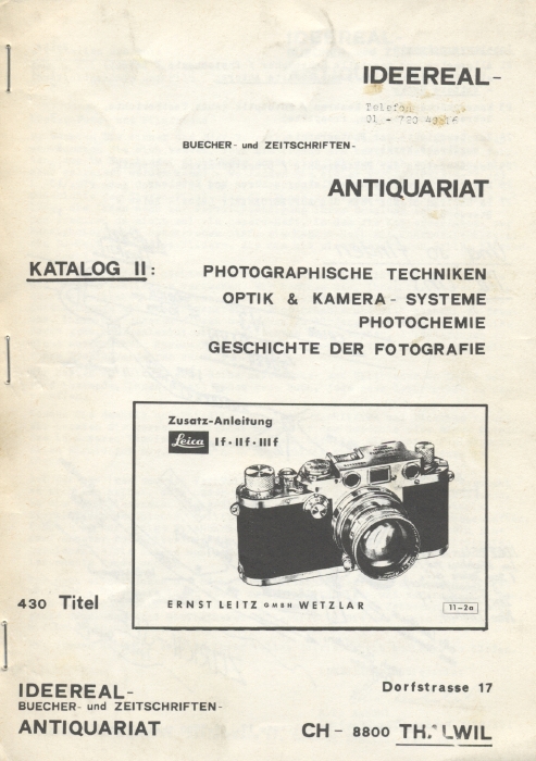 | x 020 |  | BILDMÄSSIGE LEICA-PHOTOS DURCH TONTRENNUNG | Lehrbuch | C-D | 25,-- |