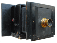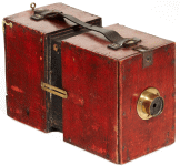 VOIGTLÄNDER Metallkamera, 1841P.F.W. Voigtländer, Wien; Petzval-Objektiv 3,7/149mmca. 93mm Durchmesser Die Serienproduktion begann 1841 und endete ca. 1860. Die Anzahl wird auf ca. 1000 Stück (Afalter) geschätzt. Die ersten Repliken (25 Stück) wurden schon im Jahr 1938 von Voigtländer hergestellt. Anläßliche der 200-Jahrfeier der Firma Voigtländer im Jahr 1956 wurden in der Lehrwerkstätte der Firma 200 Repliken hergestellt die alle die Seriennummer 84 tragen. 1972 ließ ein privater Sammlerkreis weitere 100 Stück mit der Seriennummer 84 herstellen die auf der Unterseite des Statives von 1-100 CA graviert sind und von der Firma Camera Antica in Stuttgart um 2600 DM verkauft wurden. |