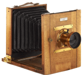 Schaller, ca. 1895Christof Schaller, Wien; Spreizenkamera 13x18cm mit Steinheil Unofocal 5,4/18cm Nr.126823 Schlitzverschluß. |