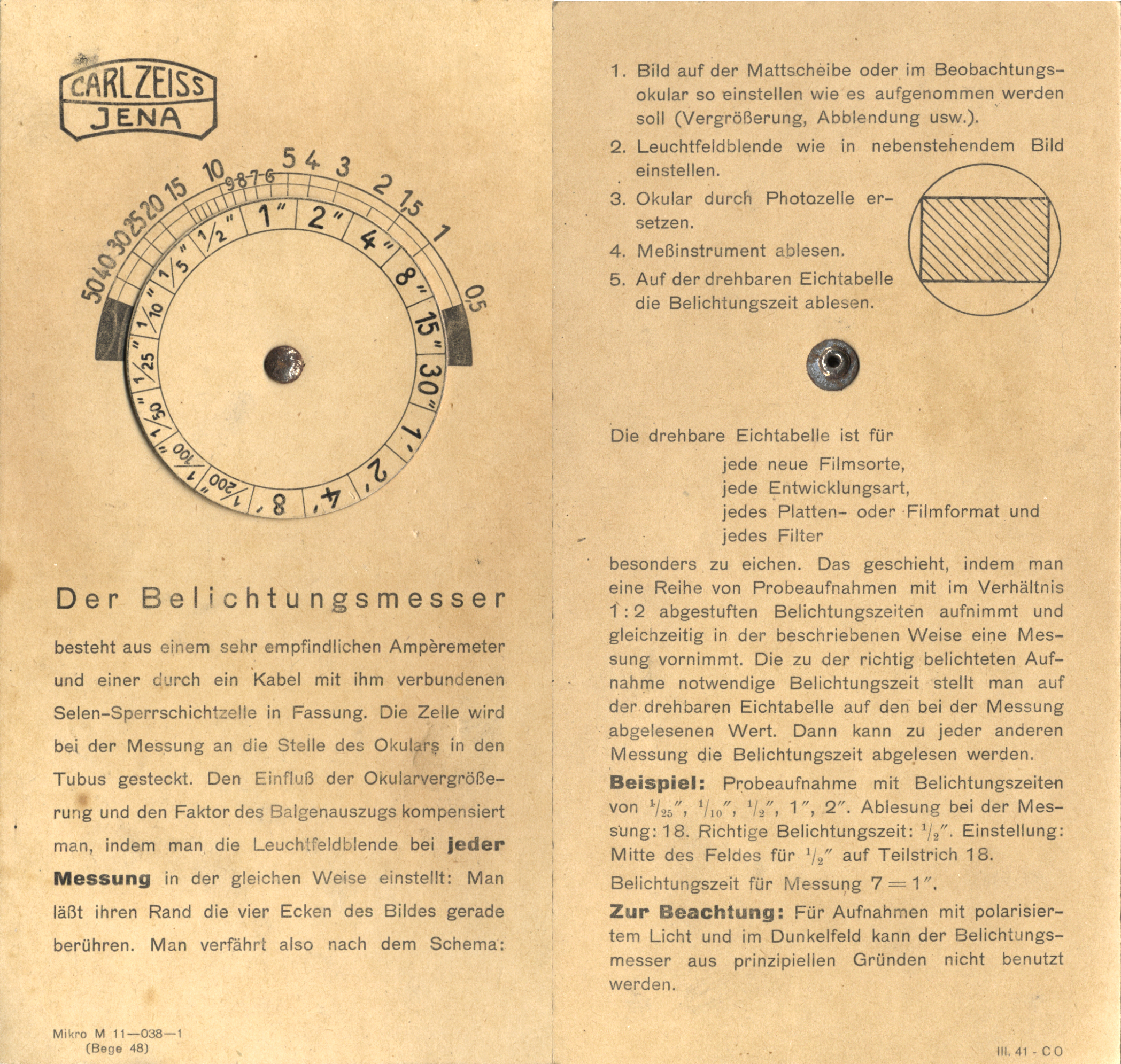 Belichtungsmesser CARL ZEISS JENA | für Mikroskope | 1930er-40er Jahre |