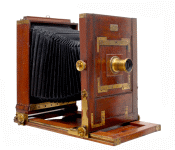 Schaller, ca. 1895Christof Schaller, Wien; Spreizenkamera 13x18cm mit Steinheil Unofocal 5,4/18cm Nr.126823 Schlitzverschluß. |