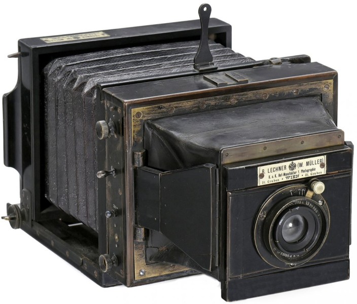 R.LECHNER ca. 1889; Serien# 508R.Lechner, Wien; Spiegelreflexkamera 9x12cm mit Plattenmagazin |