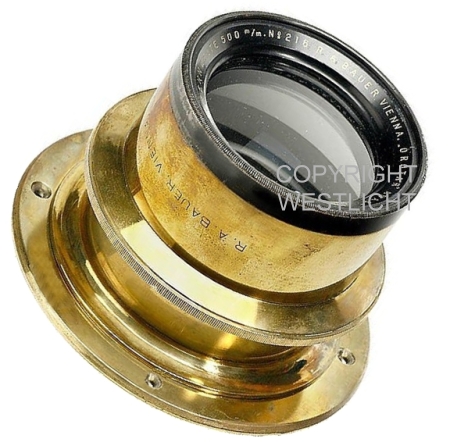 R.A.Bauer, Wien 18., ca. 1918-25Graviert: "R.A.BAUER, VIENNA. OROTAR Anastigmat 6,8/500 F=6,8 Brennweite 500m /m" |
