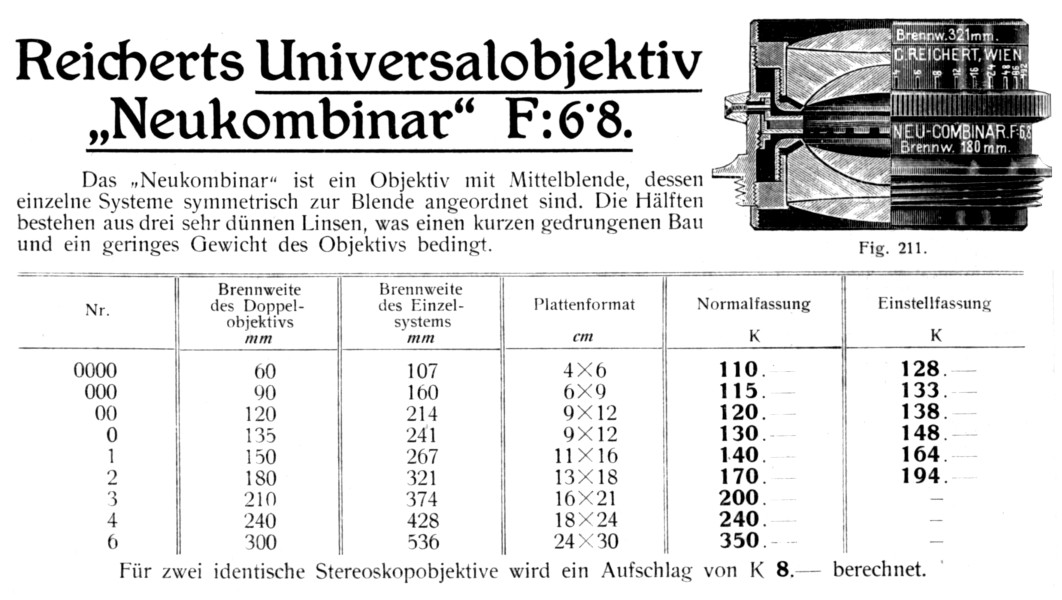 Carl REICHERT, Wien ca. 1909Neu-Combinar 6,8/240 |