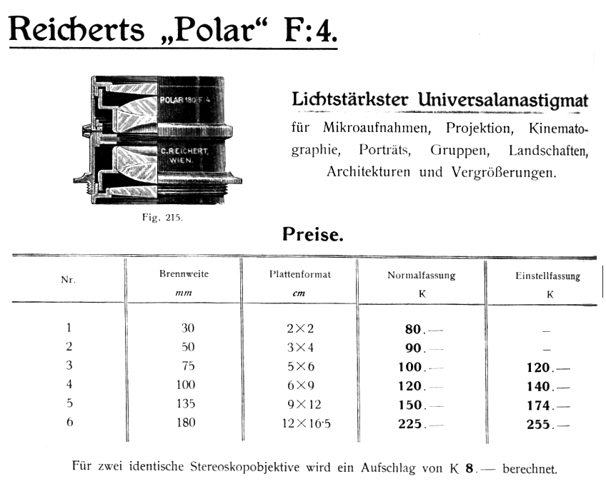 CARL REICHERT, Wien ca. 1909Polar 4/75mm |