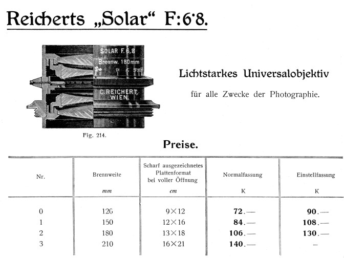 Carl REICHERT, Wien ca. 1908Solar 6,8/180mm |