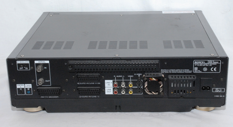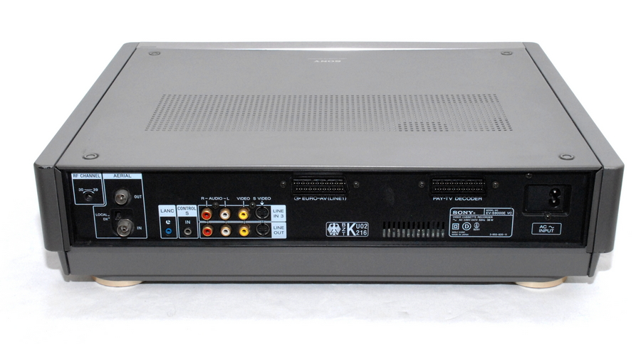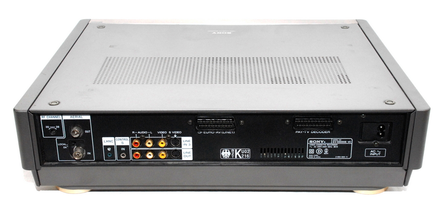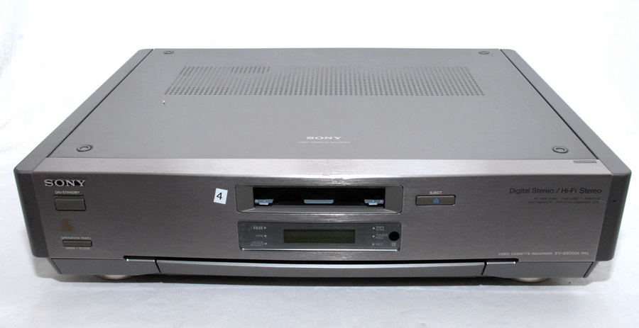 Sony EVS-9000E Hi8 Recorder, Eingänge: 1xScart, 2xS-Video+AV-Cinch, 1xS-Video, Augänge: 1xScart, 1x V Cinch, 1x -Video |