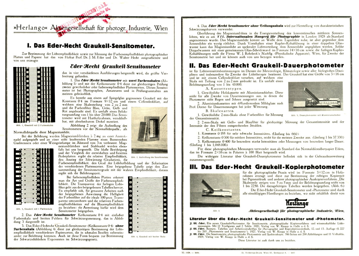 EDER-HECHT HERLANGO, Wien ca. 1929 Graukeil Papier-Belichtungsmesser (Kopierphotometer) |