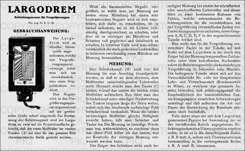 Dr. EMIL MAYER, Wien ca. 1931LARGODREM, elektrischer Papier-Belichtungsmesser |